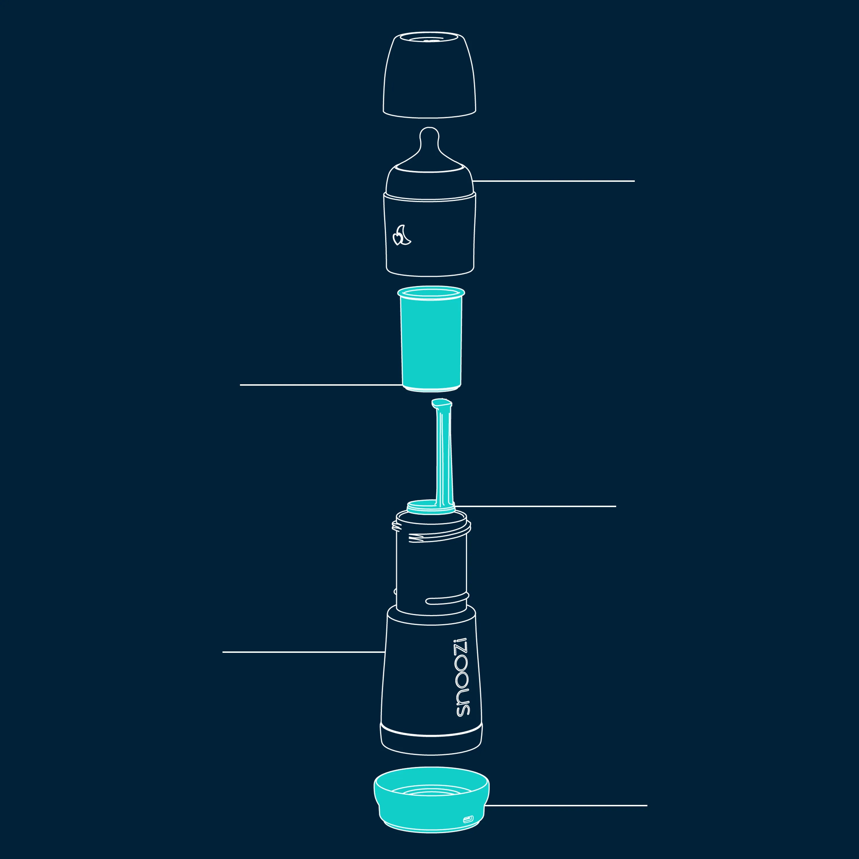 S inovativnim Snoozi setom koji se sastoji od noćne bočice i grijača, pripremaš savršeno temperiranu bočicu u sekundi – svježu, higijensku i bez stresa.