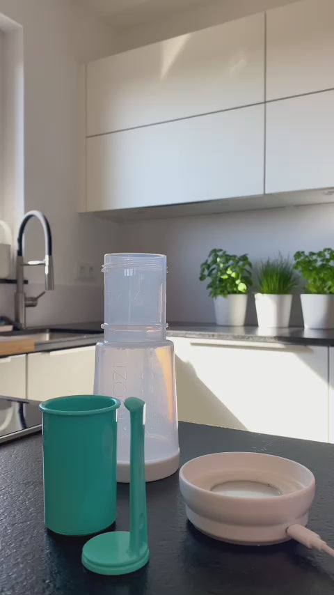 Tijelo bočice sadrži prokuhanu vodu i hermetički je odvojeno od spremnika za mliječni prah. Samo se voda u tijelu bočice održava na konstantnoj temperaturi od 37 °C.